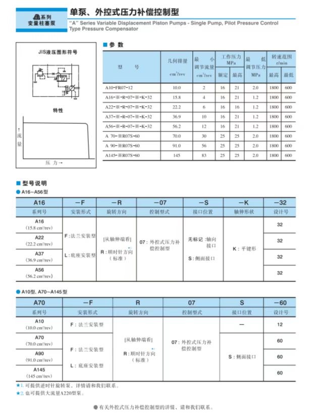 單泵、外控式壓力補償控制型變量柱塞泵