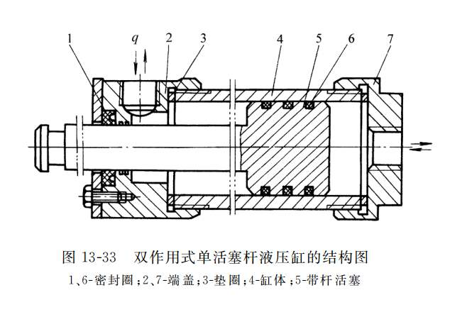 活塞式液壓缸可分為單桿式和雙桿式兩種結(jié)構(gòu),其固定方式由缸體固定和活塞桿固定兩種,按液壓力的作用情況有單作用式和雙作用式。在單作用式液壓缸中,壓力油只供液壓缸的一腔,靠液壓力使缸實現(xiàn)單方向運動,反方向運動則靠外力(如彈簧力、自重或外部載荷等)來實現(xiàn);而雙作用液壓缸活塞兩個方向的運動則通過兩腔交替進(jìn)油,靠液壓力的作用來完成。